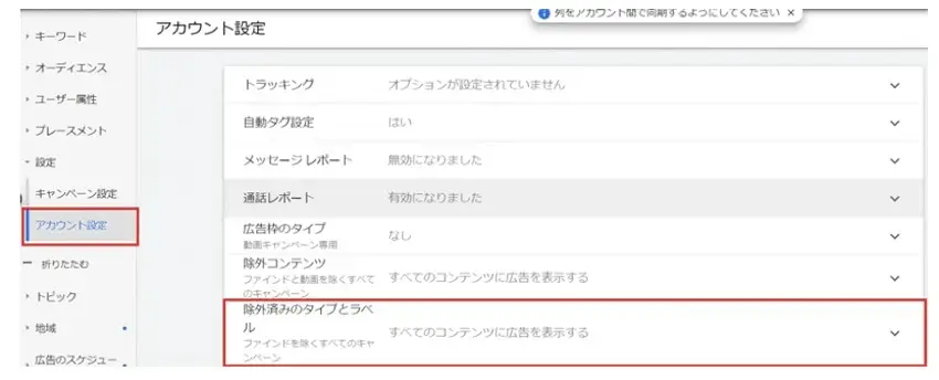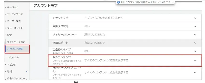 こちらは動画キャンペーン限定となり、ディスプレイ広告では使用できません。 この機能も「アカウント設定」のプルダウンの1メニューとしてご利用できます。