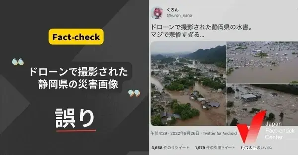 2022年9月に発生した台風15号は、静岡県に豪雨被害をもたらしました。その際に「ドローンで撮影された静岡県の水害。マジで悲惨すぎる…」とコメントを添えた水害の画像がTwitterに投稿され、6千件近くリツイートされました。