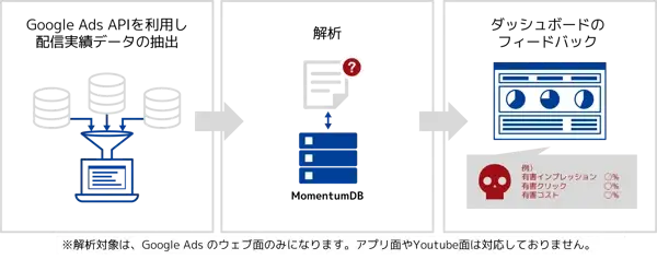 HYTRA ANALYTICS for Google Adsはこのような課題を解決するためのサービスです。本サービスを一言で要約すると、「ブランド毀損リスク可視化サービス」です。実際に行う作業としてはシンプルです。