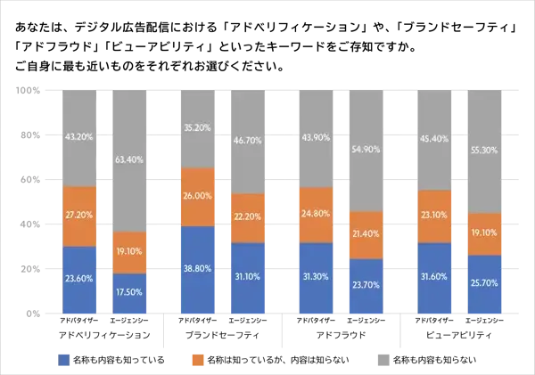 実は2020年のインターネット広告業界関係のトレンドの一つに「アドベリフィケーション」を含む広告サプライチェーンの透明化が入っていました(※1)。我々Momentum株式会社がアドベリフィケーションに関わるマーケティングを行っていく中でも、すでにアドベリフィケーションを知っているという方が多かった印象があります。では、実際はどのくらい浸透しているものか数字で見ていきましょう。