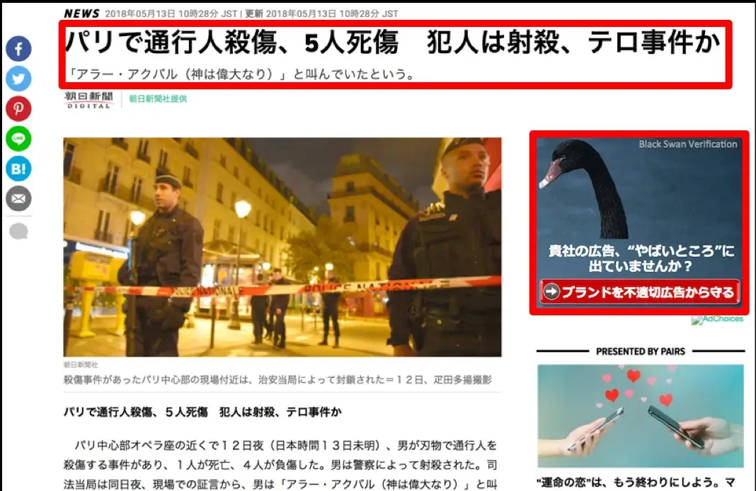 見て頂いている通り、コンテンツとしてはかなりセンシティブな内容になります。 Momentumのフィルタでは、このような記事はユーザーの購買意欲を削いでしまうネガティブなコンテンツと判断し、ブロッキングバナーと差し替えています。 Momentumとして広告を配信するには適切ではない面としているのは下記カテゴリです。
