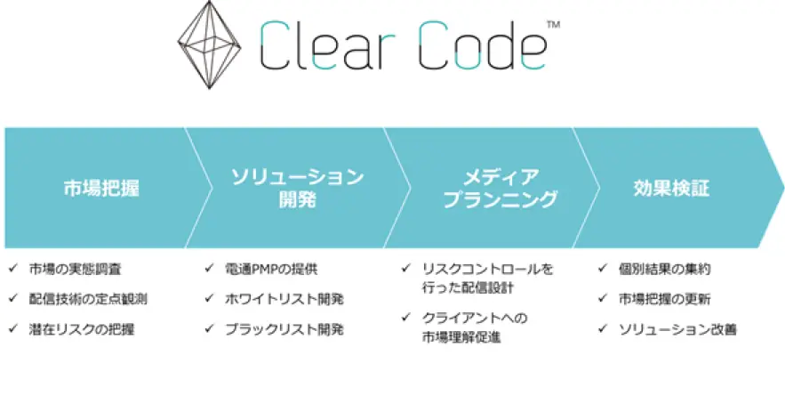 アドベリフィケーションをはじめ、あらゆるトラブルが起こった際には、迅速に対処することももちろん大切です。しかし、弊社ではそもそものリスクを事前にコントロールできないか?という観点を大切にしています。電通デジタルでは2年前から、弊社の全クライアント様に対して均質的なサービスを提供すべきだ、という考えのもと「Clear Code(クリア・コード)」という取組を始めました。この取組の一環として、2年ほど前からモメンタムさんの知見や開発力をお借りして、弊社向けにカスタマイズしていただいた『エージェンシーブラックリスト』が完成したのが約1年前。それからは弊社の全広告案件に、そのブラックリストを無償提供させていただいています。