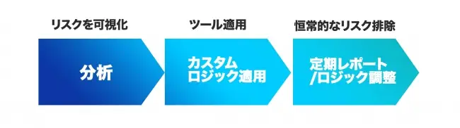 「Hyper Transparency for Advertiser(ハイトラ)」では、まず広告主独自のブランド毀損リスクのあるキーワードや、アドフラウド率、ビューアビリティの実態を細かく分析したうえで、分析結果を反映したカスタムロジックの設計と運用を行います。運用後も、恒常的なモニタリングによって定期レポートでのご報告やカスタムロジックの調整をおこないながら、長期的にアドベリフィケーションの取り組みをサポートいたします。