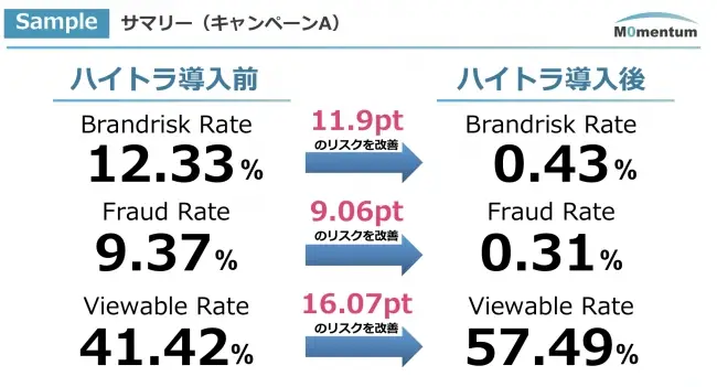 これにより、モメンタムではTAG基準のアドフラウド対策、ブランドセーフティ、MRC基準のビューアビリティ計測と、全方位型でアドベリフィケーションへの対策を実現する環境が整いました。