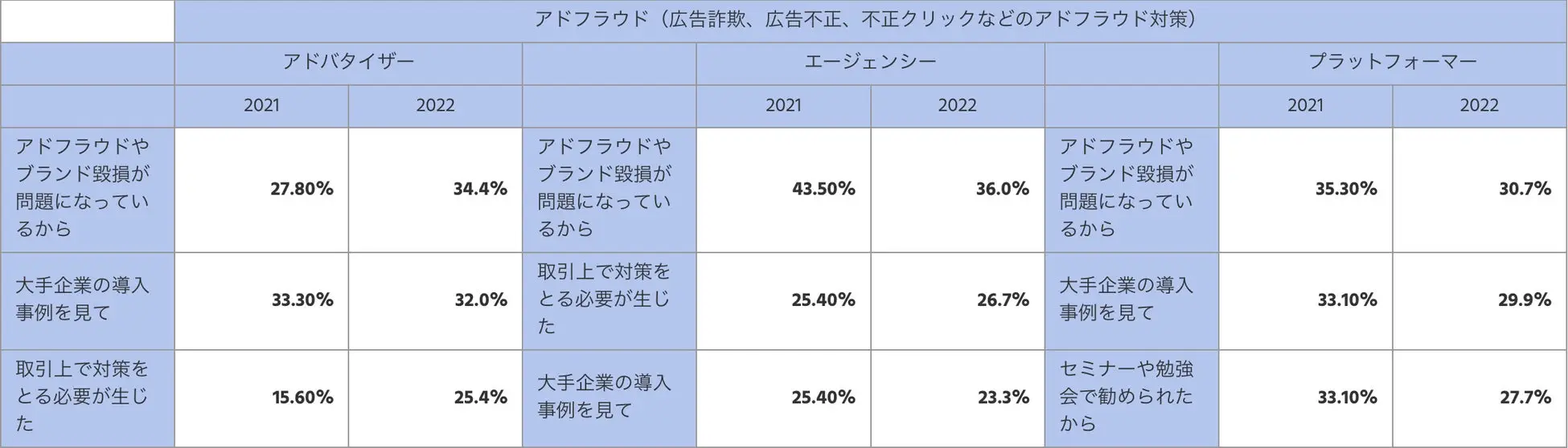 アドフラウド(ポジティブ回答TOP3/前年比較)