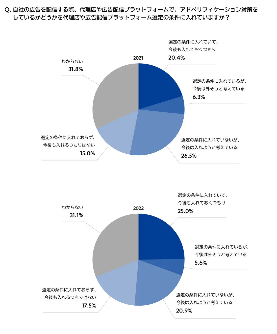 Q. 自社の広告を配信する際、代理店や広告配信プラットフォームで、アドベリフィケーション対策をしているかどうかを代理店や広告配信プラットフォーム選定の条件に入れていますか。