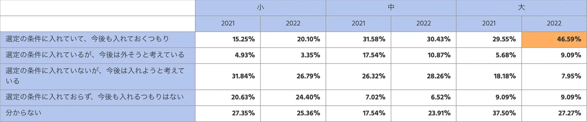 レポート内の事業規模の区分について