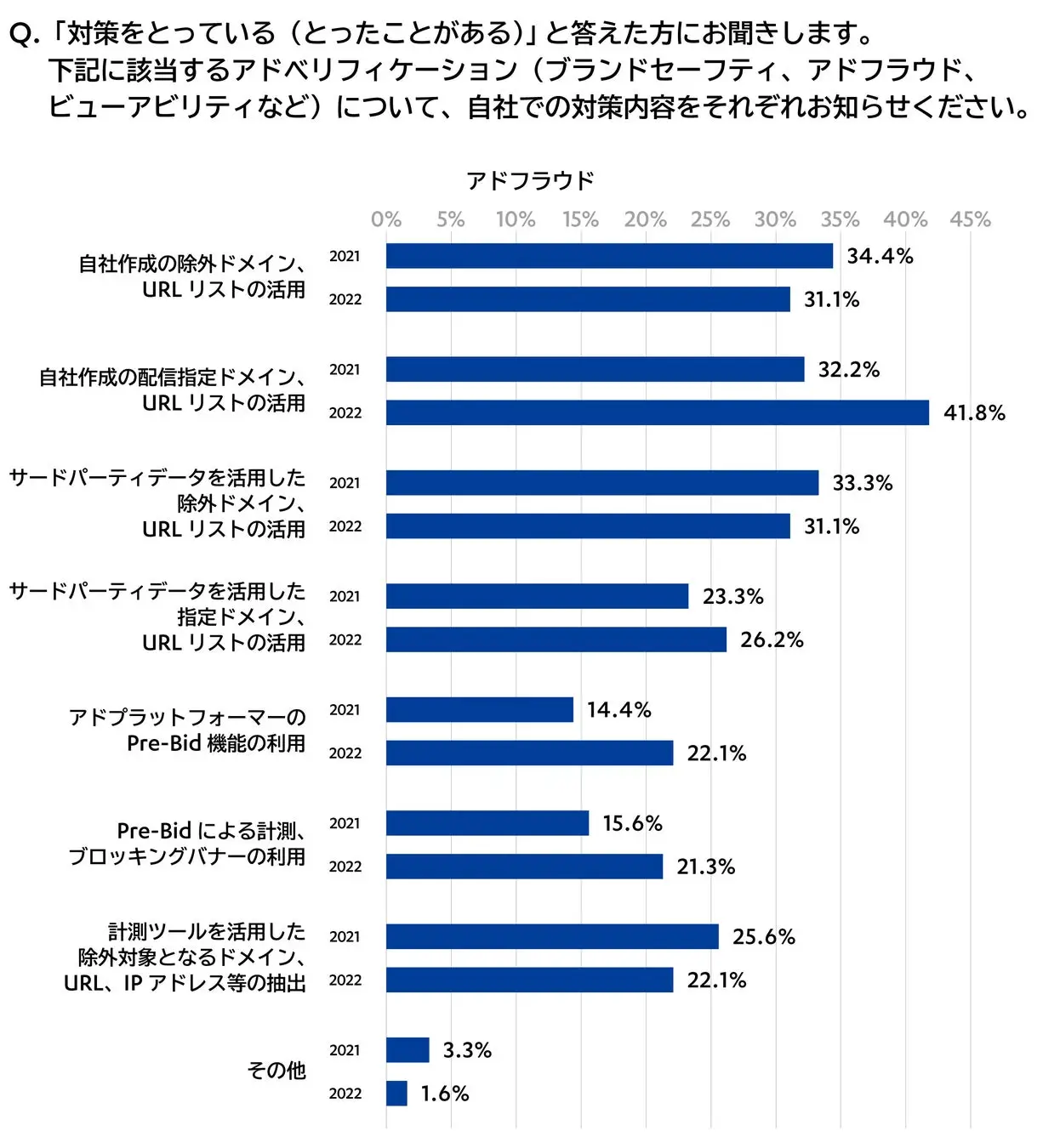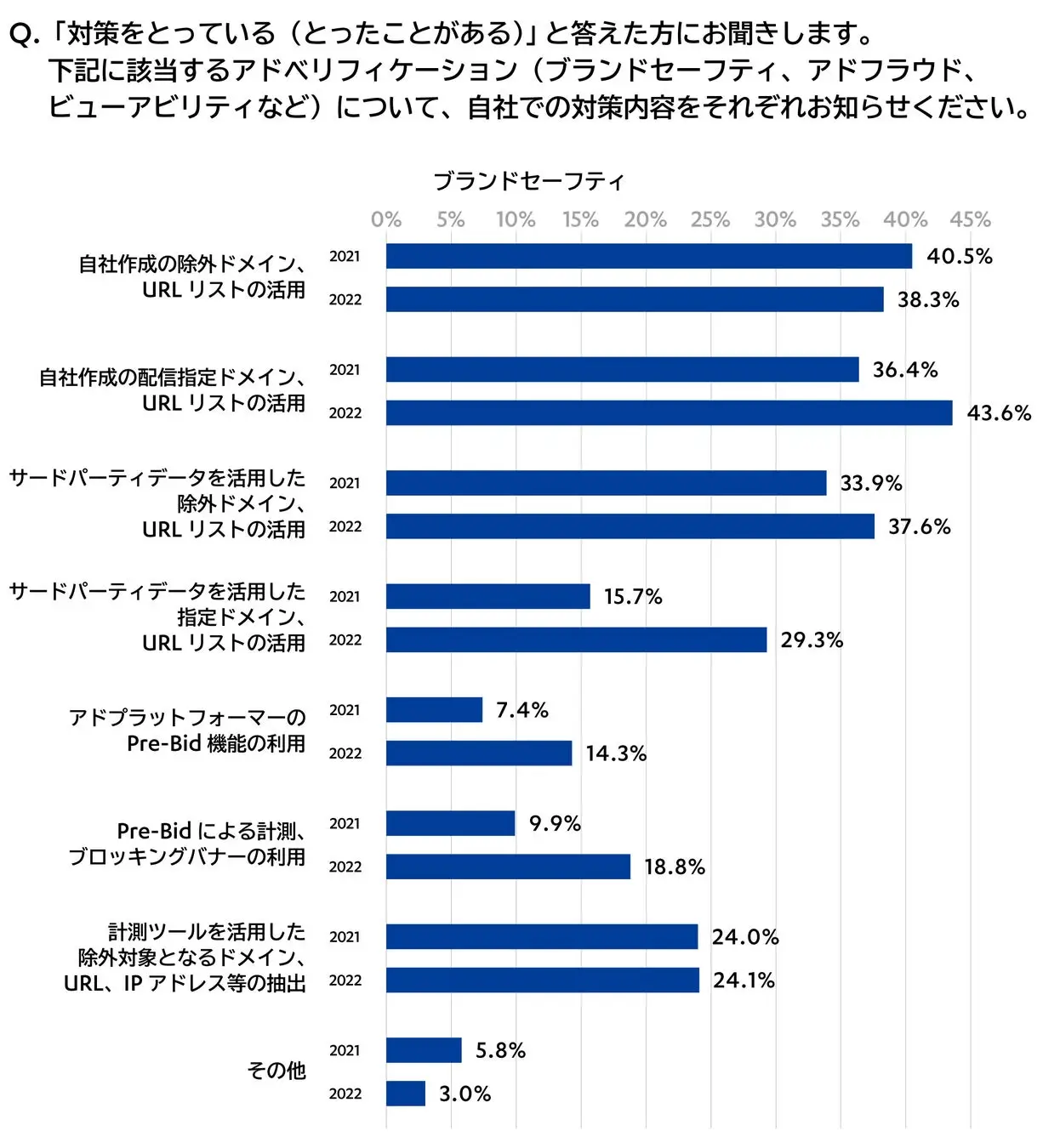 Q. 該当するアドベリフィケーション(ブランドセーフティ、アドフラウド、ビューアビリティなど)について、自社での対策内容をそれぞれ教えてください。