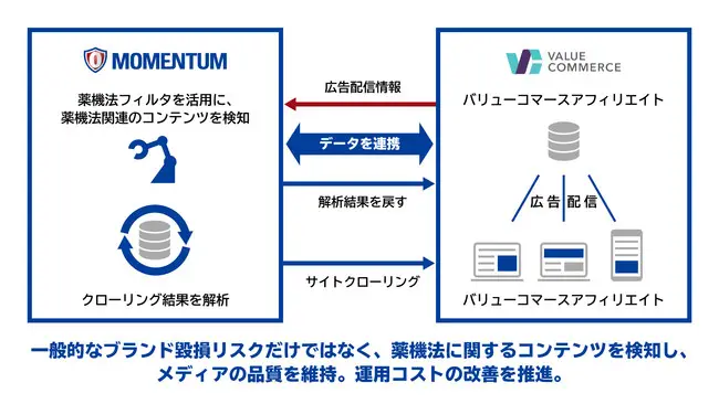 Momentum 株式会社(本社:東京都港区、 代表取締役社長:瀬戸 亮、以下、Momentum)は、 バリューコマース株式会社(本社:東京都千代田区、代表取締役社長 最高経営責任者:香川 仁、以下、バリューコマース)へ薬機法フィルタシステムを提供開始しました。